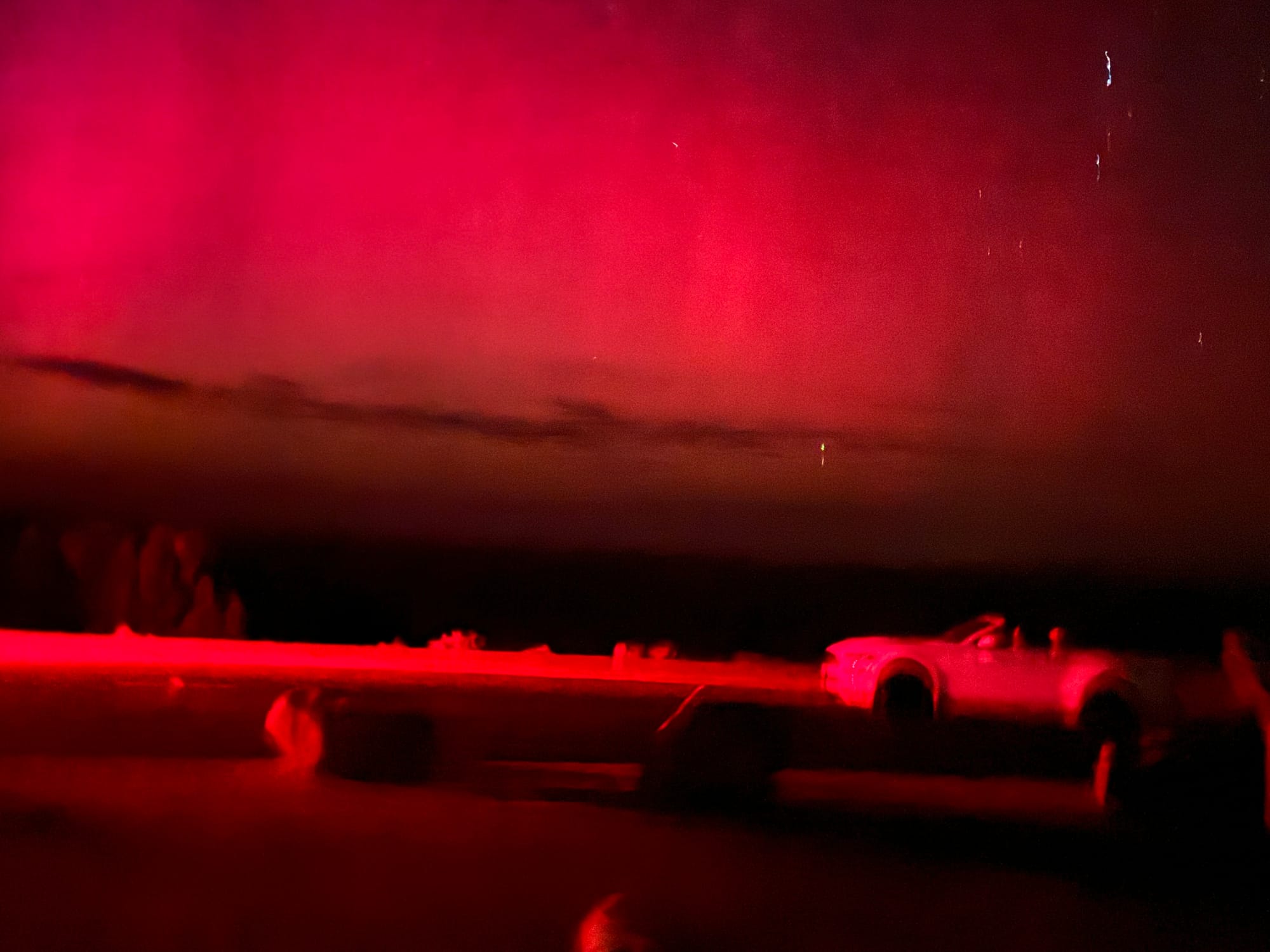 To the naked eye, it didn't look like the photo above. It looked a little bit like a black and white TV on static, only instead of white and black it was red and white. And the part of the sky that was moving looked a bit like sky geysers – it didn't take the whole sky, just a part of it, and that part of it was intense.